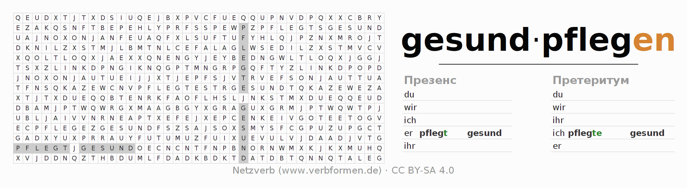 Головоломки по всем формам глагола gesundpflegen (regelm)