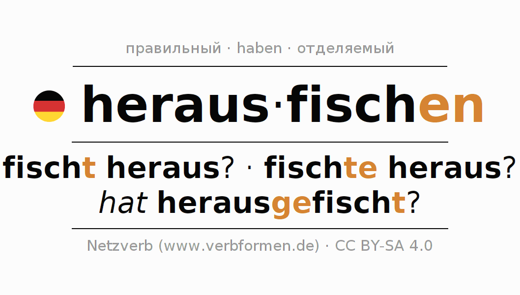 Глагольные таблицы, содержащие все формы глагола herausfischen, для наглядности объединены в одну общую таблицу.