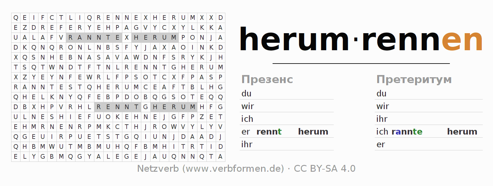 Головоломки по всем формам глагола herumrennen