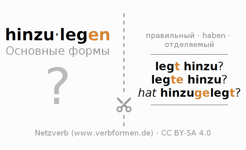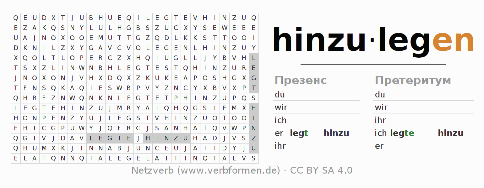 Головоломки по всем формам глагола hinzulegen