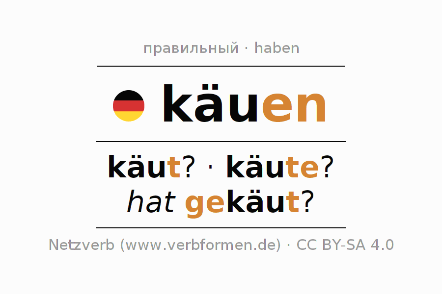 Глагольные таблицы, содержащие все формы глагола käuen, для наглядности объединены в одну общую таблицу.