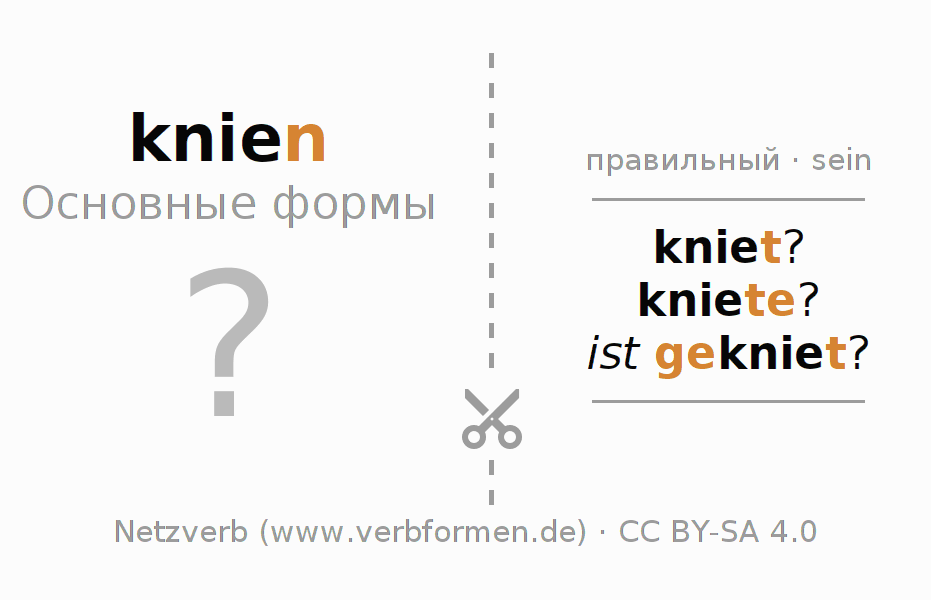 Таблицы спряжения всех форм глагола knien (ist)