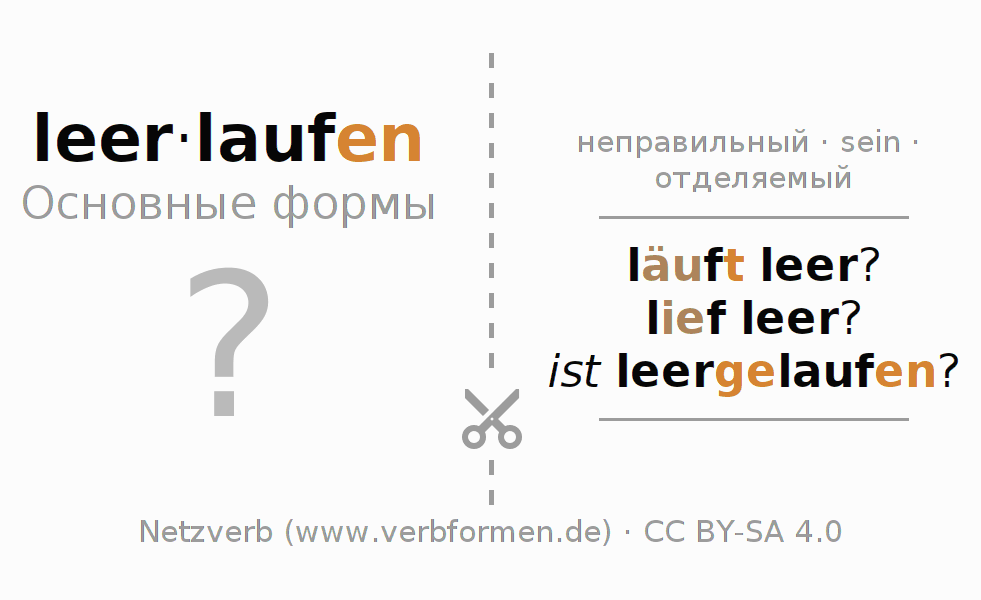 С помощью обучающих карточек можно эффективно и удобно изучать и запоминать глагольные формы leerlaufen. Обучающие карточки можно распечатать в формате PDF и вырезать.