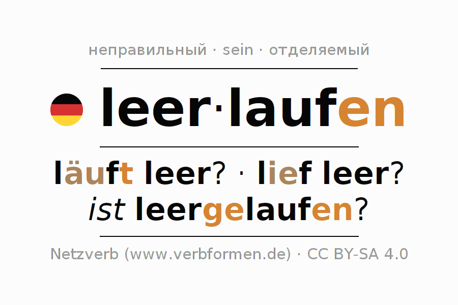Глагольные таблицы, содержащие все формы глагола leerlaufen, для наглядности объединены в одну общую таблицу.