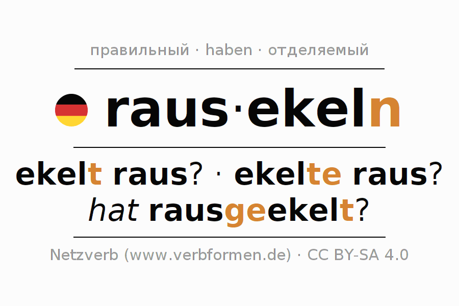 Глагольные таблицы, содержащие все формы глагола rausekeln, для наглядности объединены в одну общую таблицу.