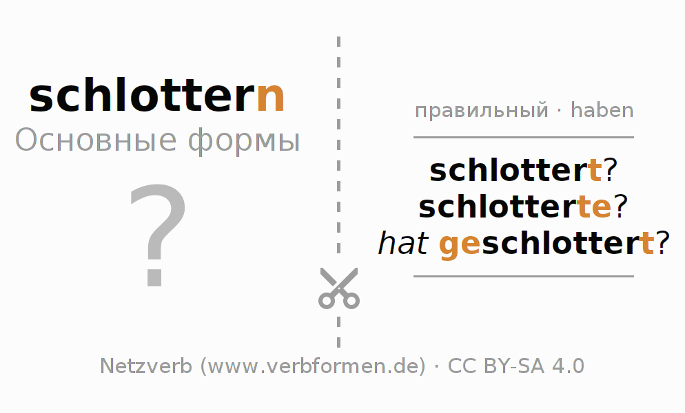 Глагольные таблицы, содержащие все формы глагола schlottern, для наглядности объединены в одну общую таблицу.