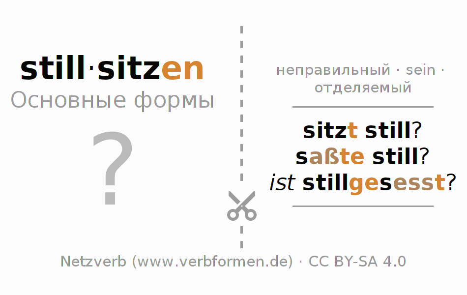 Головоломки по всем формам глагола stillsitzen (ist)
