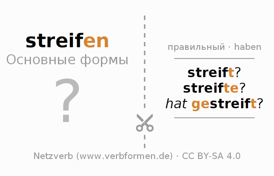 Глагольные таблицы, содержащие все формы глагола streifen, для наглядности объединены в одну общую таблицу.