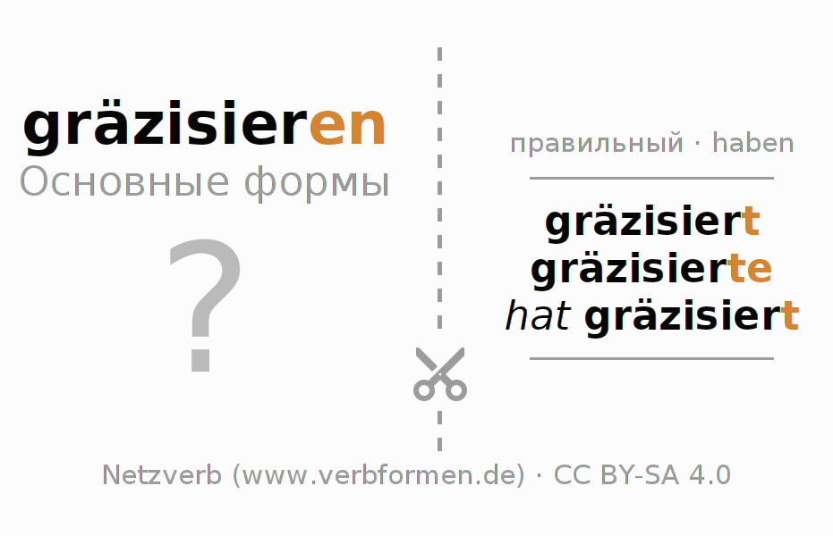 С помощью обучающих карточек можно эффективно и удобно изучать и запоминать глагольные формы gräzisieren. Обучающие карточки можно распечатать в формате PDF и вырезать.