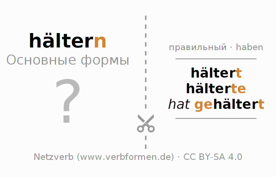 Глагольные таблицы, содержащие все формы глагола hältern, для наглядности объединены в одну общую таблицу.
