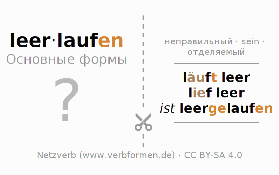 С помощью обучающих карточек можно эффективно и удобно изучать и запоминать глагольные формы leerlaufen. Обучающие карточки можно распечатать в формате PDF и вырезать.
