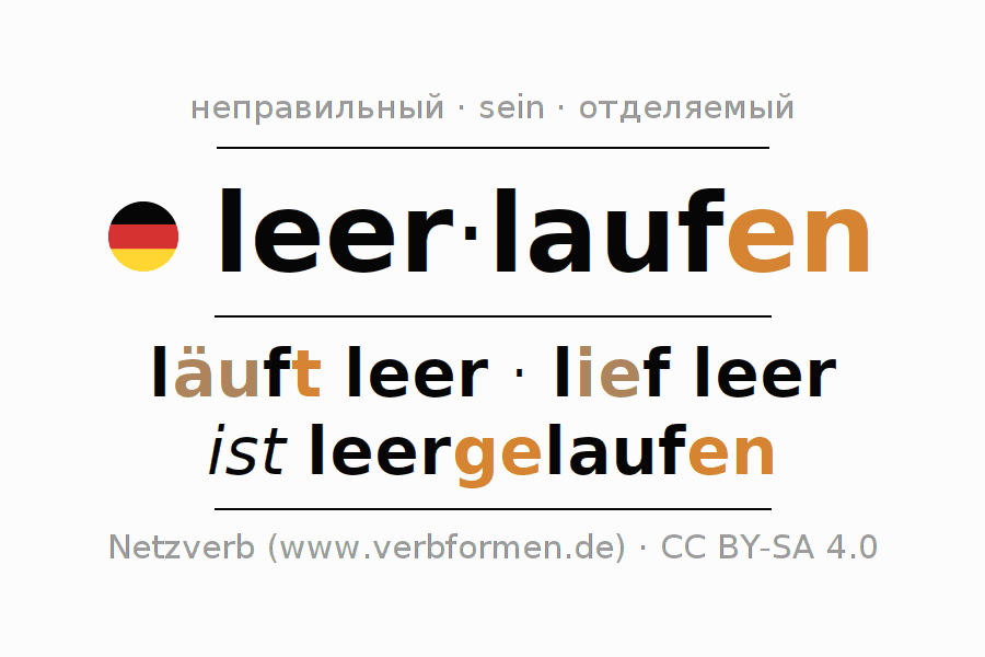 Глагольные таблицы, содержащие все формы глагола leerlaufen, для наглядности объединены в одну общую таблицу.