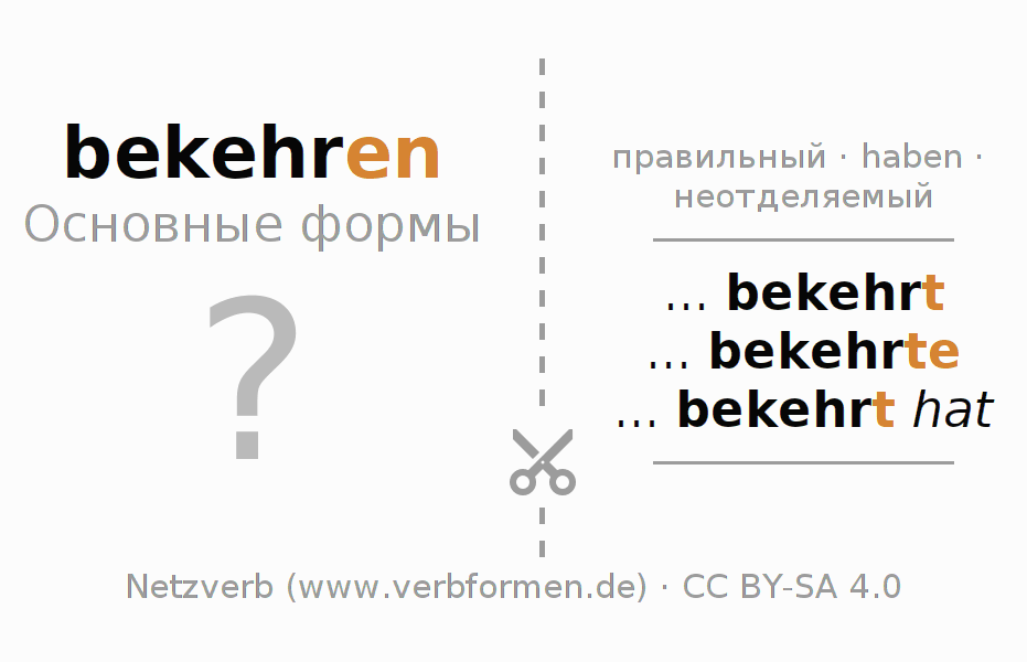 | bekehren Основные формы | ... bekehrt ... bekehrte ... bekehrt hat |