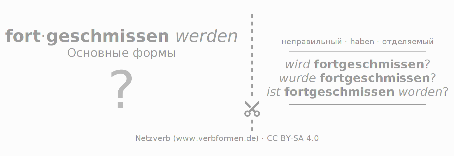 wird fortgeschmissen? wurde fortgeschmissen? ist fortgeschmissen worden? |