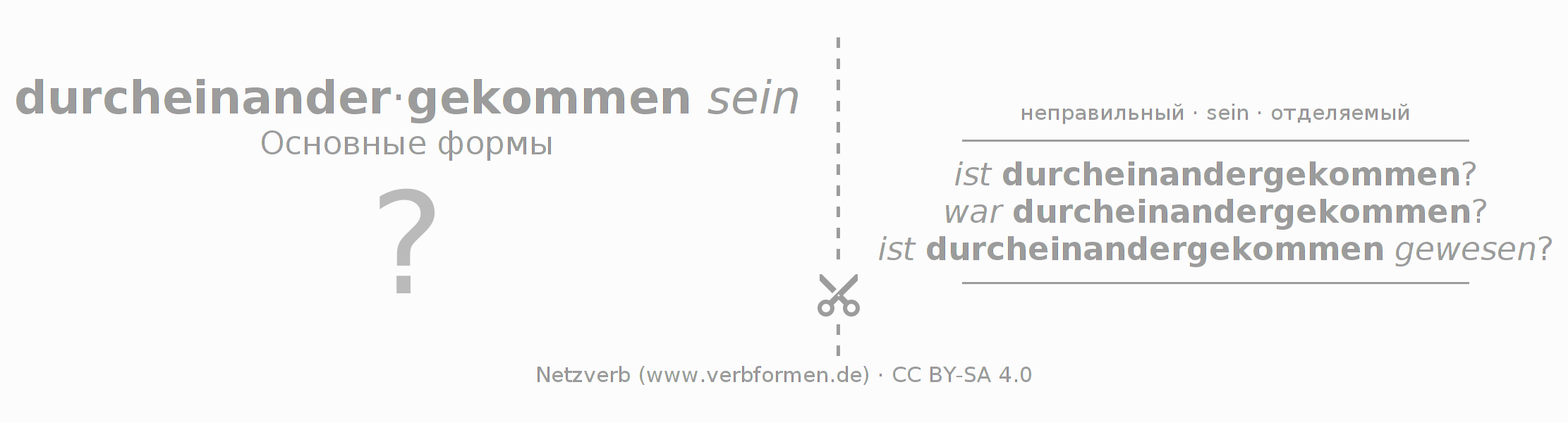 Обучающие карточки по спряжению глагола durcheinanderkommen
