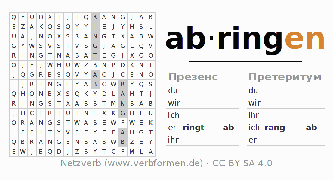 Головоломки по всем формам глагола abringen