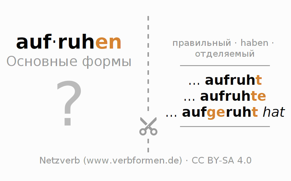 С помощью обучающих карточек можно эффективно и удобно изучать и запоминать глагольные формы aufruhen. Обучающие карточки можно распечатать в формате PDF и вырезать.