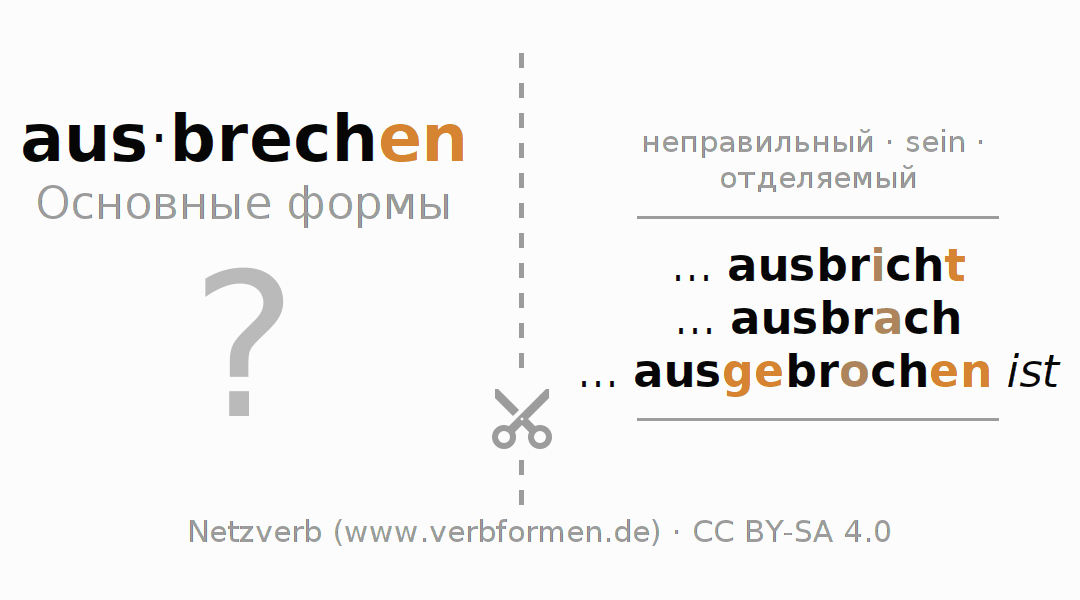 Головоломки по всем формам глагола ausbrechen (ist)