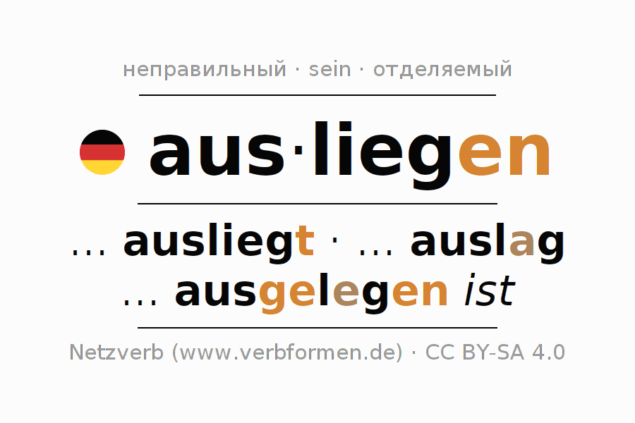 Глагольные таблицы, содержащие все формы глагола ausliegen, для наглядности объединены в одну общую таблицу.