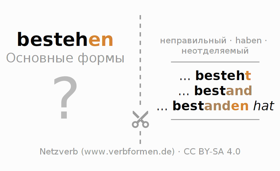 Таблицы спряжения всех форм глагола bestehen