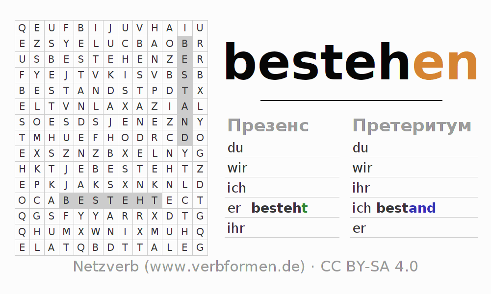 Головоломки по всем формам глагола bestehen