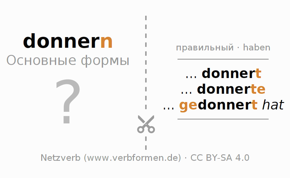 Глагольные таблицы, содержащие все формы глагола donnern, для наглядности объединены в одну общую таблицу.