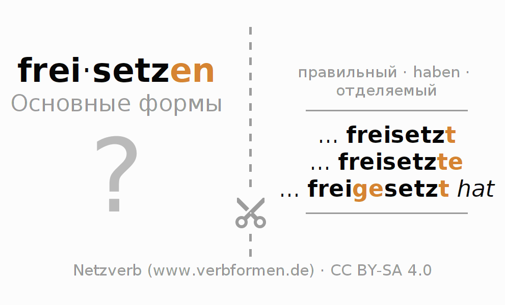 Глагольные таблицы, содержащие все формы глагола freisetzen, для наглядности объединены в одну общую таблицу.