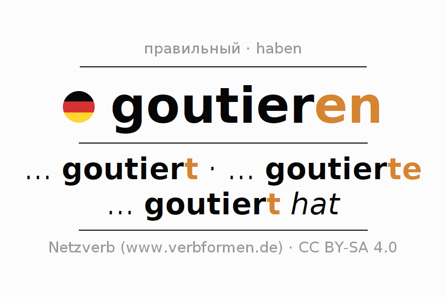 Глагольные таблицы, содержащие все формы глагола goutieren, для наглядности объединены в одну общую таблицу.