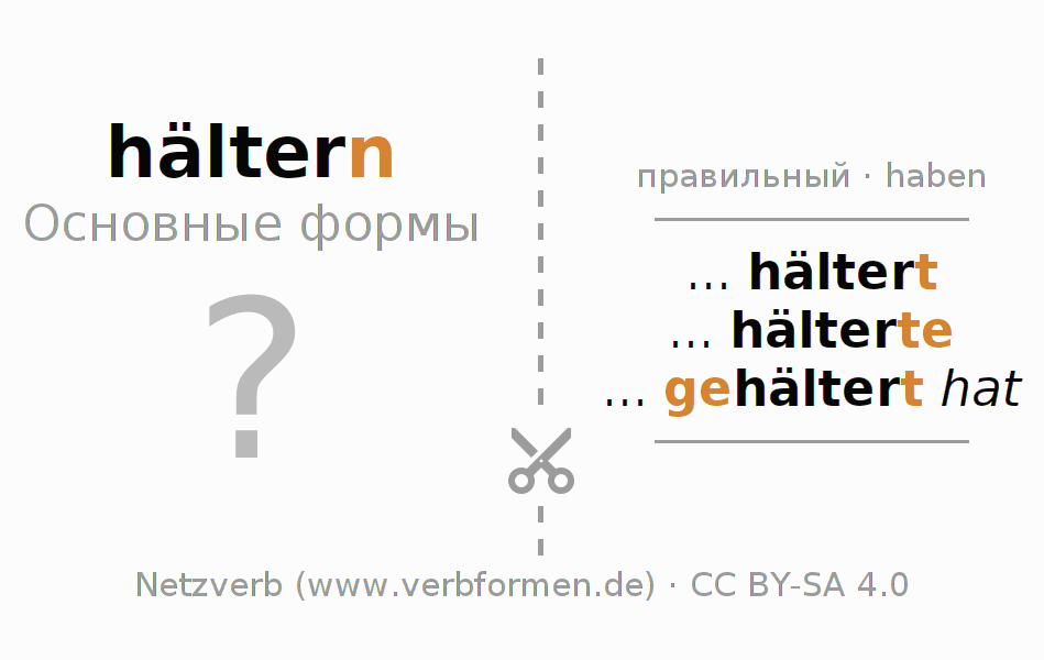 С помощью обучающих карточек можно эффективно и удобно изучать и запоминать глагольные формы hältern. Обучающие карточки можно распечатать в формате PDF и вырезать.