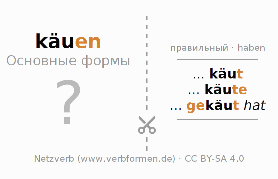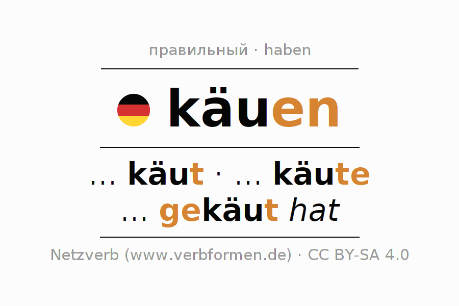 Глагольные таблицы, содержащие все формы глагола käuen, для наглядности объединены в одну общую таблицу.
