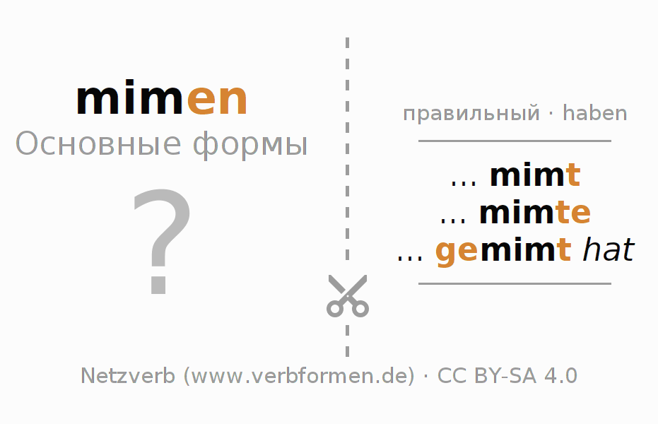 Головоломки по всем формам глагола mimen