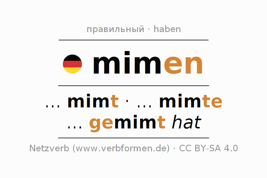 Таблицы спряжения всех форм глагола mimen