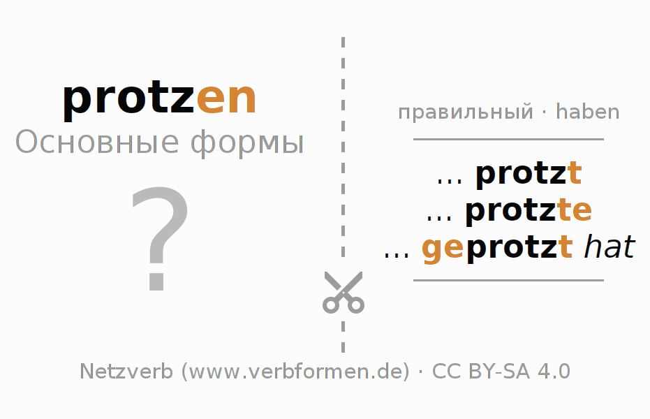 Таблицы спряжения всех форм глагола protzen