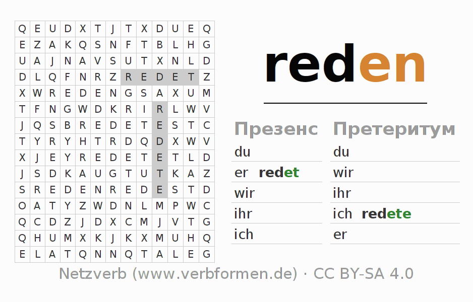 Головоломки по всем формам глагола reden