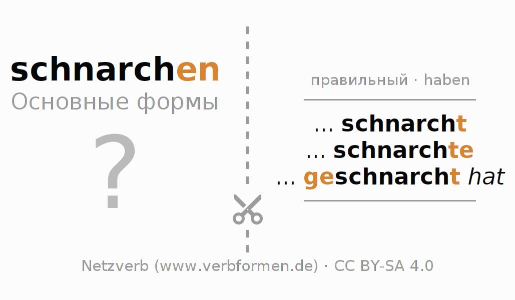 Глагольные таблицы, содержащие все формы глагола schnarchen, для наглядности объединены в одну общую таблицу.