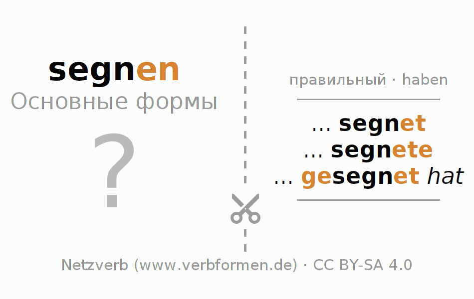 С помощью обучающих карточек можно эффективно и удобно изучать и запоминать глагольные формы segnen. Обучающие карточки можно распечатать в формате PDF и вырезать.