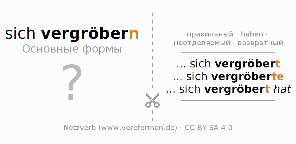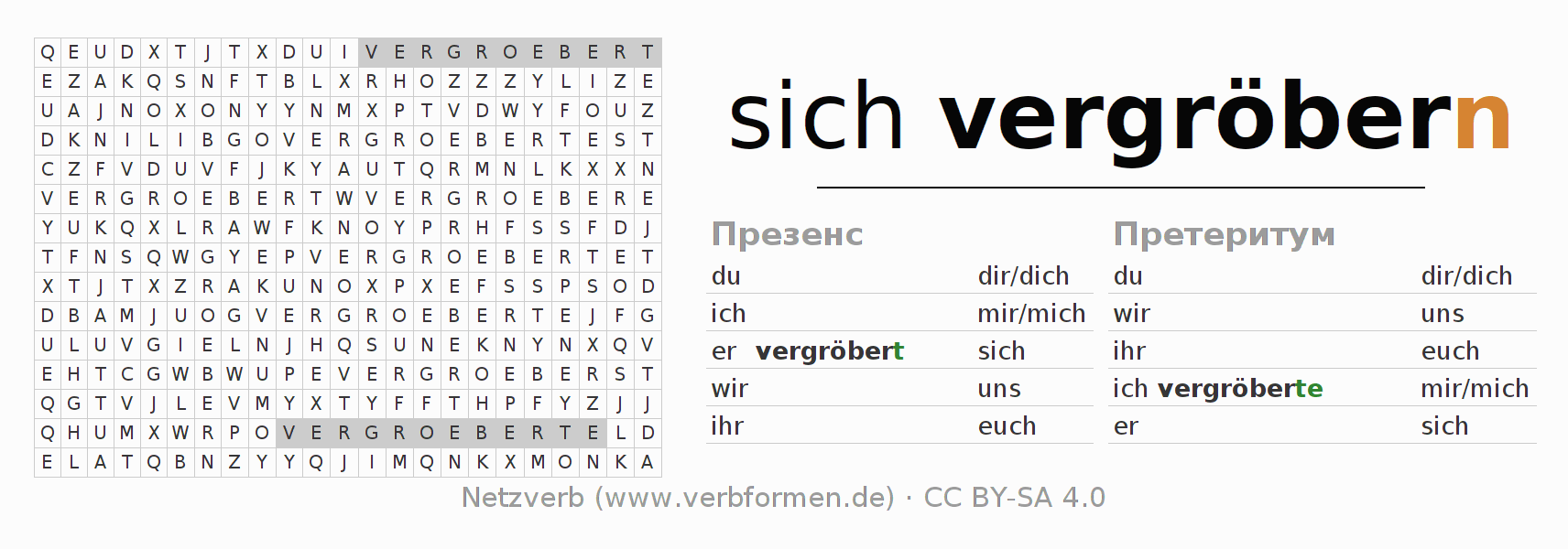 Глагольные таблицы, содержащие все формы глагола sich vergröbern, для наглядности объединены в одну общую таблицу.