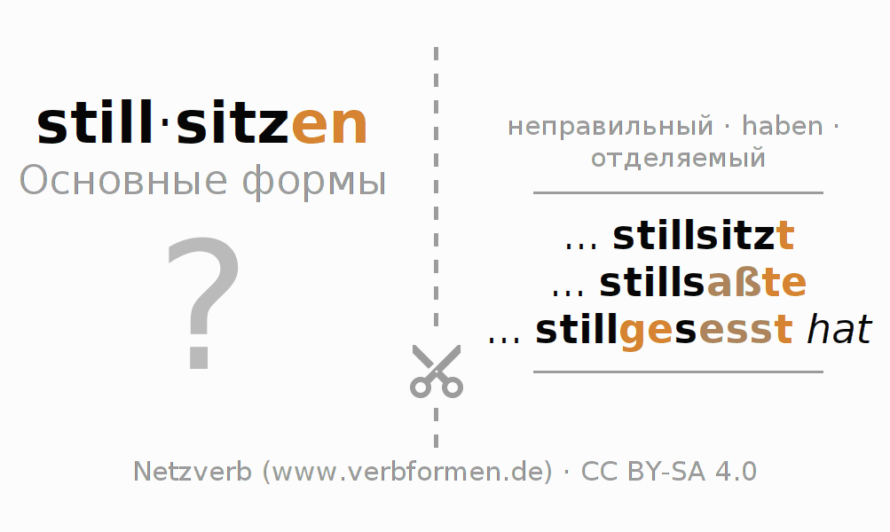 Головоломки по всем формам глагола stillsitzen (hat)