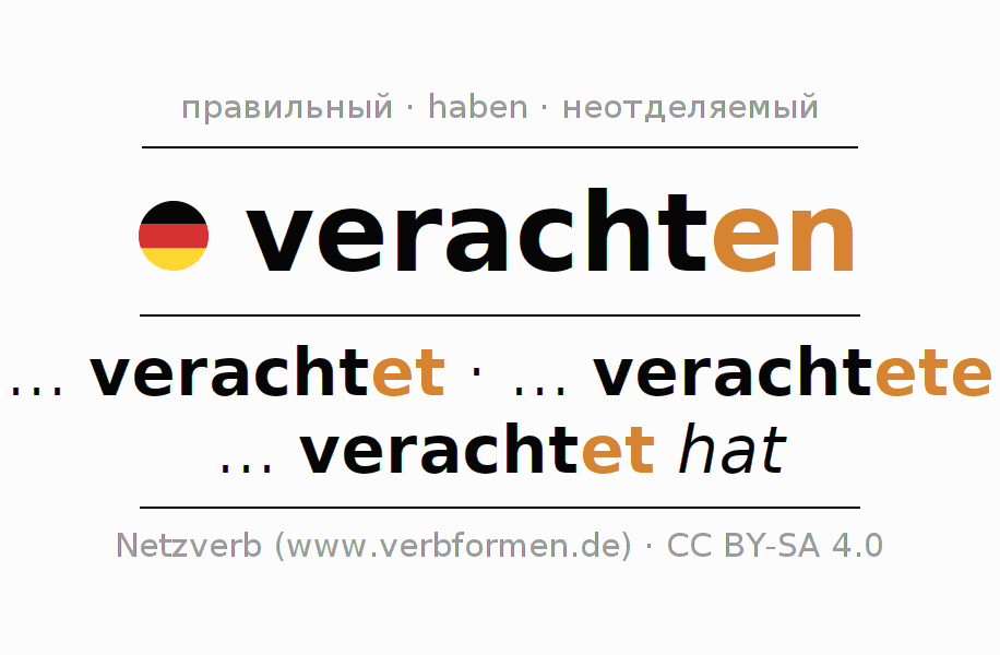 Глагольные таблицы, содержащие все формы глагола verachten, для наглядности объединены в одну общую таблицу.