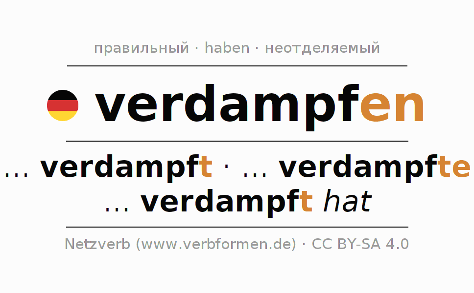 Глагольные таблицы, содержащие все формы глагола verdampfen, для наглядности объединены в одну общую таблицу.