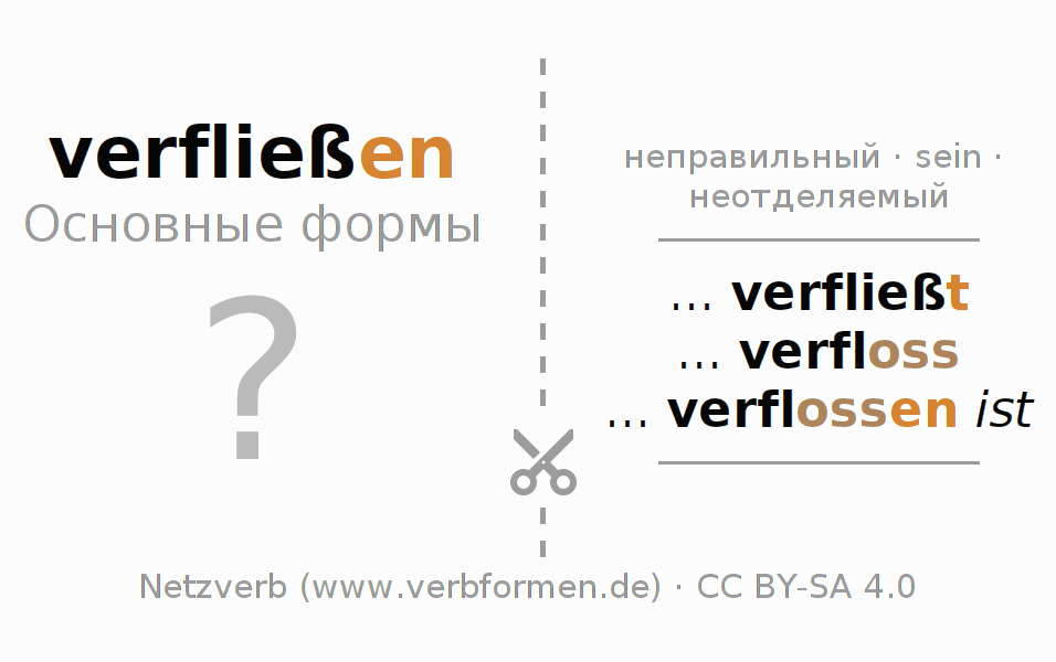 Глагольные таблицы, содержащие все формы глагола verfließen, для наглядности объединены в одну общую таблицу.