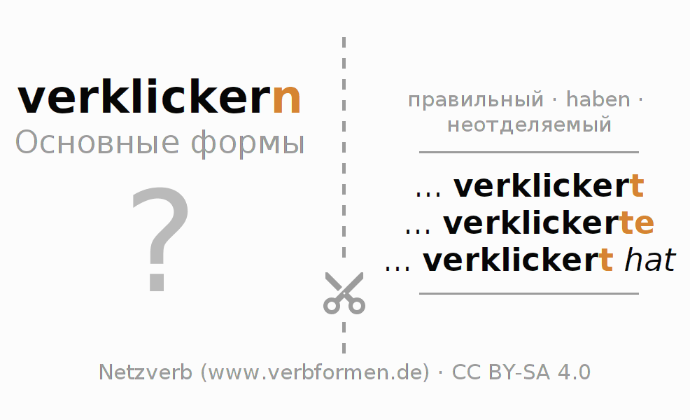 С помощью обучающих карточек можно эффективно и удобно изучать и запоминать глагольные формы verklickern. Обучающие карточки можно распечатать в формате PDF и вырезать.