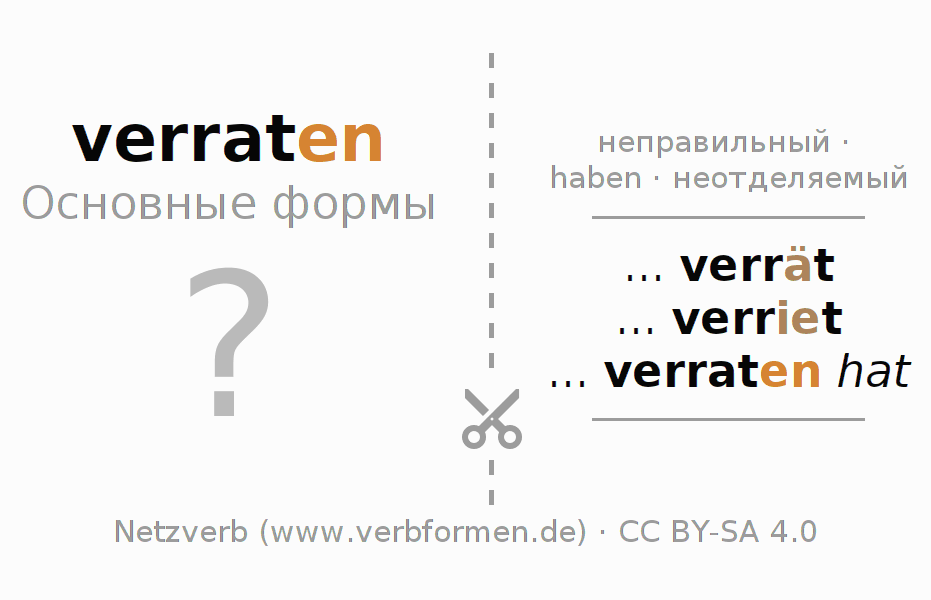 Таблицы спряжения всех форм глагола verraten