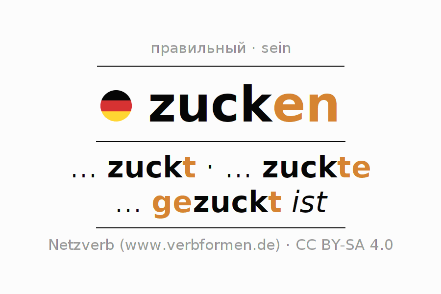 Таблицы спряжения всех форм глагола zucken (ist)