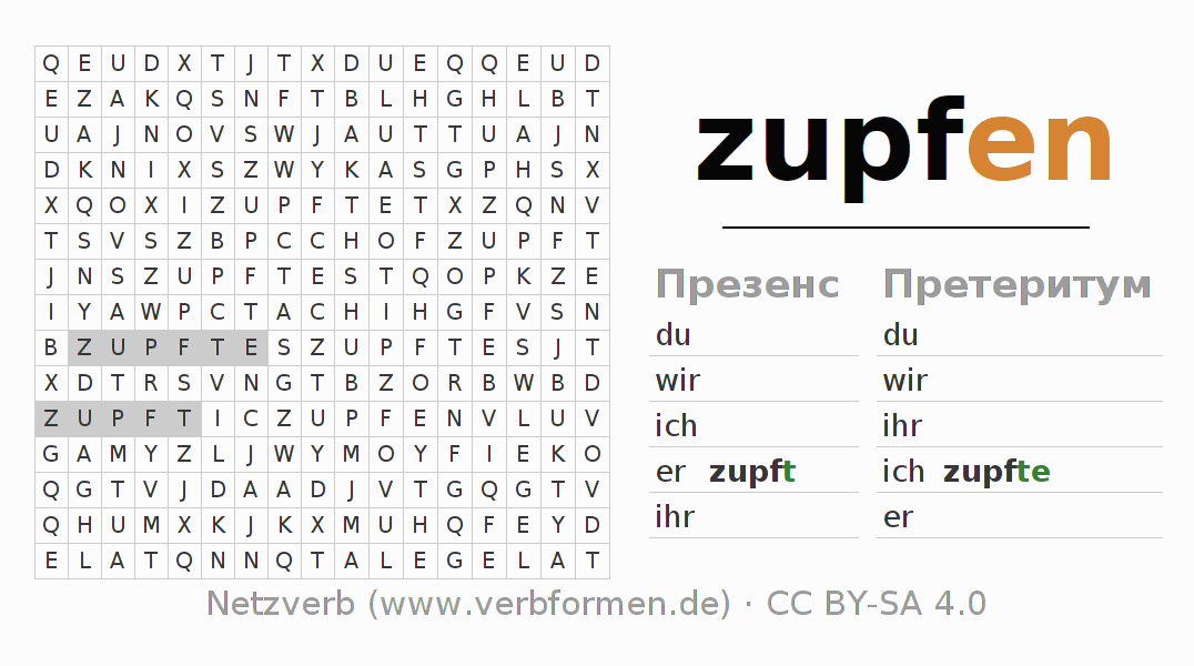 Головоломки по всем формам глагола zupfen