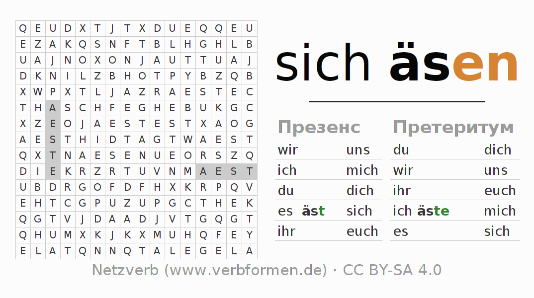 Головоломки по всем формам глагола sich äsen