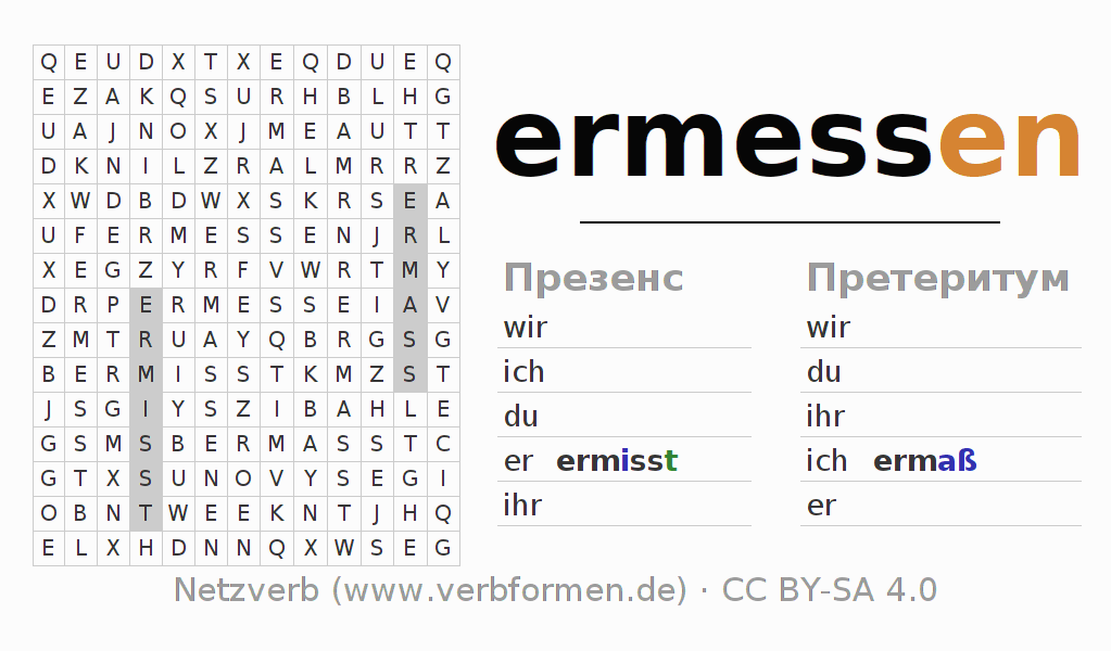 головоломка по спряжению немецких глаголов ermessen