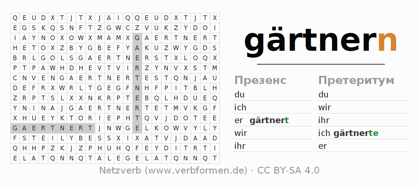 головоломка по спряжению немецких глаголов gärtnern