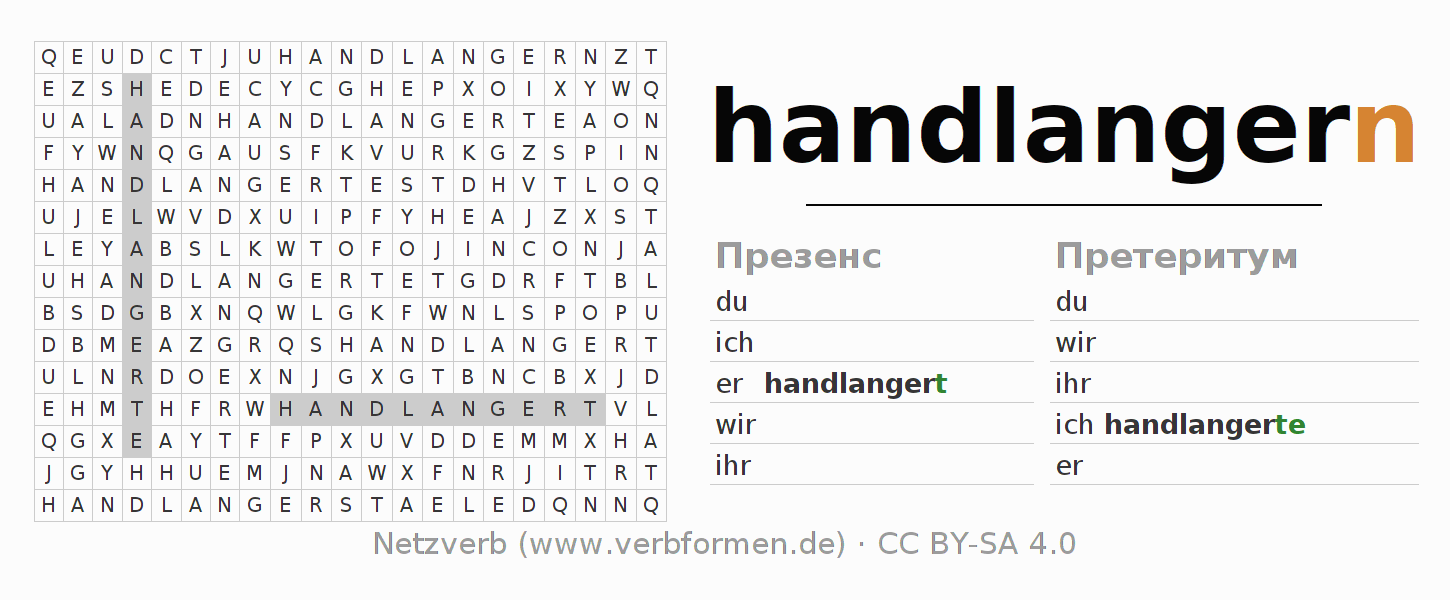 Решение головоломки по спряжению глагола handlangern