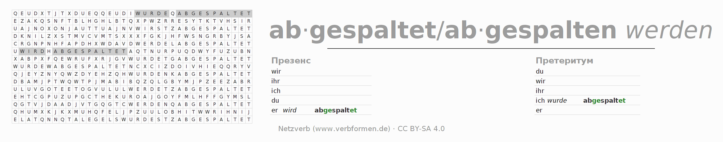 головоломка по спряжению немецких глаголов abspalten 〈Пассив с werden〉
